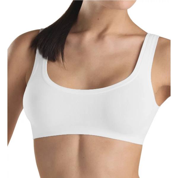 Sports bras are also a great option. They're made of a soft and stretchy cotton blend fabric with a wider elastic that rests comfortably under the breasts for an easy fit.