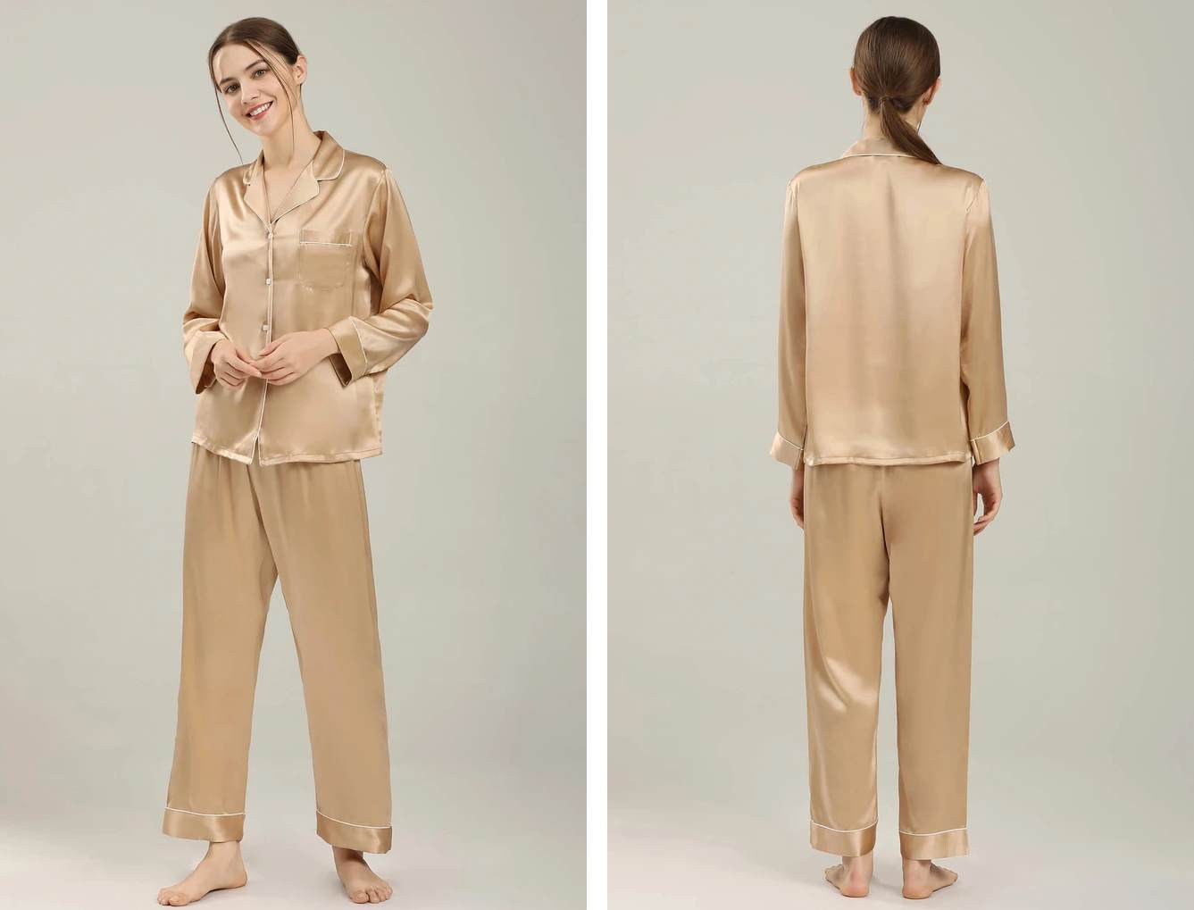 Not all silk sleepwear needs to be sexy or daring, and this popular style definitely fits the bill.