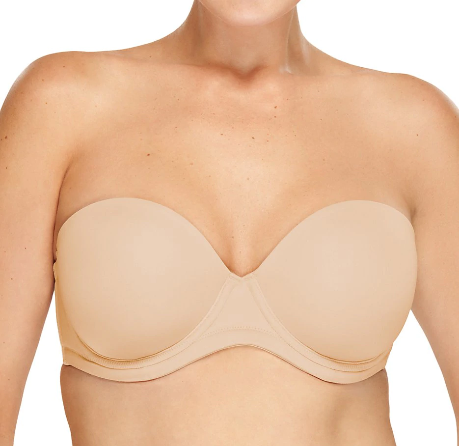 With an eye to shoulder baring styles that make a fashion statement, this strapless bra is an all-time popular pick that delivers a beautiful full bra fit. Available in sizes D through G.